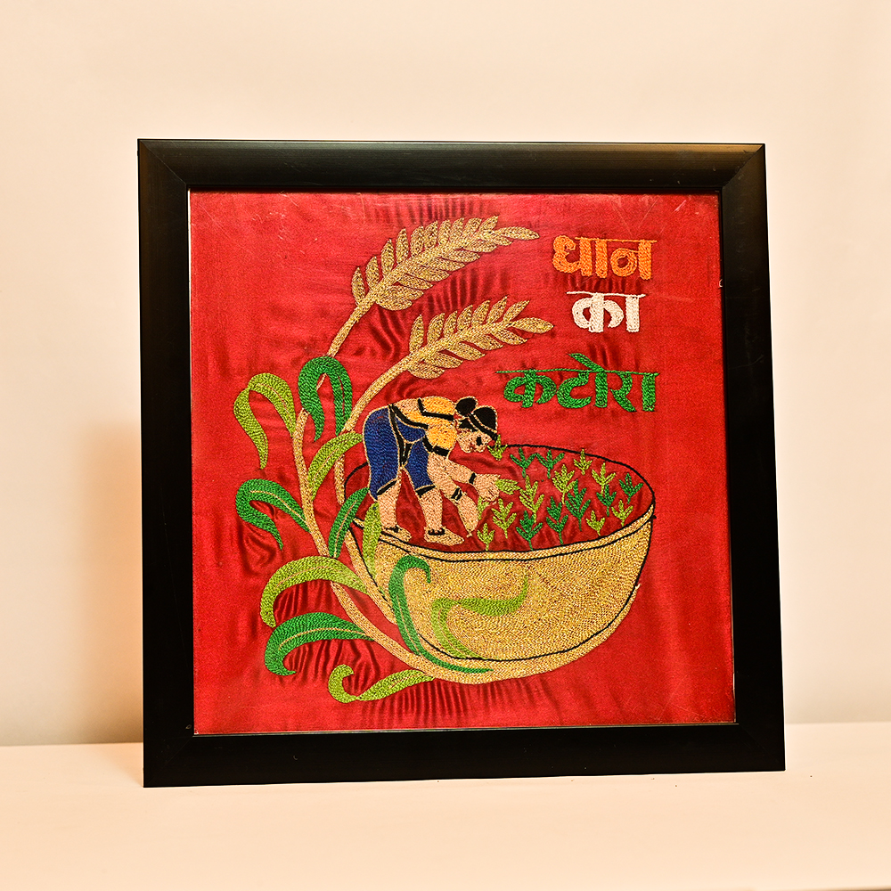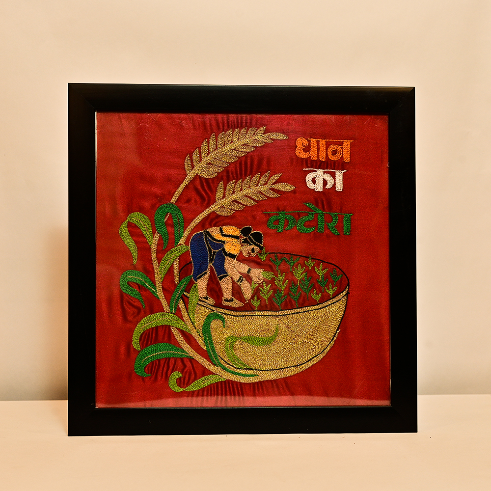 Handmade Embroidered Wall Art – Dhaan Ka Katora